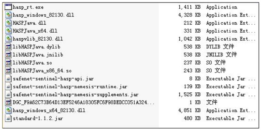 以上為加密后的 jar 包和 war 包部署方式,為了能讓加密后的 java 程序正常工作,還需要部署底層的 native 庫,即加密后產(chǎn)生的一些 dll 文件,通常有兩對(32 位和 64 為版本)共四個: