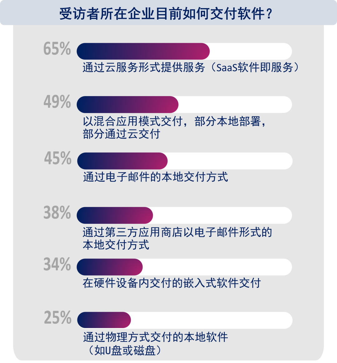 然而,實施有效的軟件貨幣化需要強有力的授權(quán)模式支撐,挑戰(zhàn)也在不斷加劇。有40%的受訪供應(yīng)商認(rèn)為跨設(shè)備許可授權(quán)是他們面臨的困難,而另有同樣數(shù)量的受訪者表示,在不同部署環(huán)境中實現(xiàn)許可授權(quán)是其難點,而超過三分之一(37%)的受訪者表示,疫情期間越來越多的遠程工作也讓一些軟件相關(guān)工作難以進行。在如此境況下,軟件供應(yīng)商迫切需要一個靈活、安全的軟件授權(quán)解決方案,來提升軟件廠商在收益、客戶量、客戶滿意度等方面,充分發(fā)揮軟件的價值。