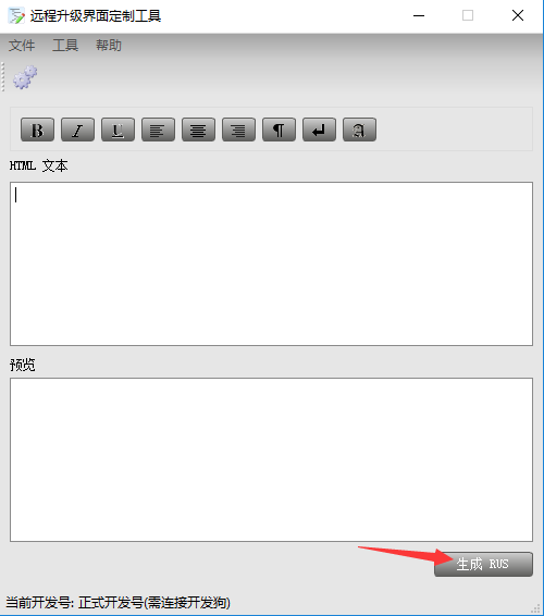 在上面菜單的工具項,選擇【設置】,勾選【使用正式開發(fā)號】,插上主鎖后點【生成RUS】