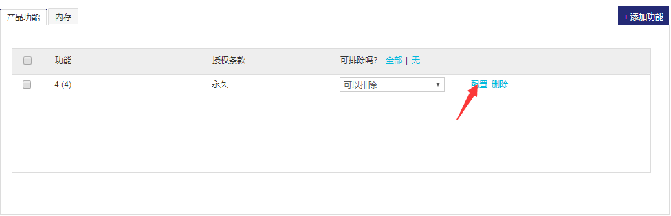 配置里面可以設置該功能的特征,如到期時間,運行次數等,默認是單機永久屬性。